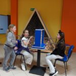 Następna w kolejności była wizyta w „EksploraParku”- miejscu, w którym nauka zamienia się w zabawę. Dwie godziny spędzili nasi uczniowie na rozwiązywaniu różnych zagadek, rebusów i zadań matematycznych. I o dziwo, nikt nie skarżył się na tak długą lekcję matematyki. Dużym zainteresowaniem cieszyło się przejście labiryntem luster, zabawa interaktywnymi zabawkami np.; reflektomierzem, który pomaga ćwiczyć koncentrację i refleks. Ciekawe były również wystawy na których przedstawiono przykłady złudzeń optycznych oraz działanie energii odnawialnej.