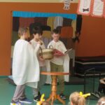 Największą nagrodą za włożony trud aktorów były oczywiście oklaski i słowa uznania od publiczności. Dzieci zostały przygotowane pod kierunkiem pani Elżbiety Adamczyk-Chełpy i pani Pauliny Chodorowskiej.