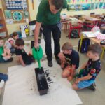 W poniedziałek, 20 maja 2024 r., uczniowie klasy 2d zamienili się w ogrodników. Przy pomocy profesjonalisty (taty jednego z naszych uczniów- p. Tomasza), posadzili rośliny w przygotowanych wcześniej doniczkach z ziemią. Były to między innymi: mięta, bazylia, rzodkiewka, fasola, sałata, itp. Wszyscy podjęli się bardzo odpowiedzialnego zadania pielęgnacji roślinek. Zobowiązali się do systematycznego ich podlewania i doglądania. Sadzenie poprzedziła pogadanka o warunkach i etapach rozwoju roślin. Dzieci będą miały możliwość codziennej obserwacji efektów swojej pracy. Z niecierpliwością czekają na możliwość pełnienia dyżurów i śledzenia wzrastania roślinek.