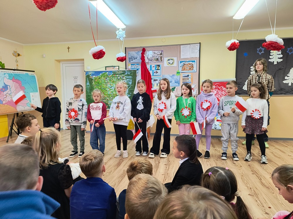 Uczniowie klas I B: Iga Bieżyńska, Aleksandra Jemioło, Antonina Królikowska, Zuzanna Małek, Paulina Michałowska, Lena Sitarska, Iga Wilczyk, Dawid Sobczyk, Jan Michalak, Leszek Badke oraz II C: Zuzanna Dutka, Mikołaj Bejczak, Mikołaj Szymankiewicz, Szymon Półtorak, Leo Van Nguyen przygotowali piękne występy artystyczne, w których nie zabrakło pieśni patriotycznych, recytacji i krótkich scenek przypominających drogę Polaków do wolności. Narracje całego wydarzenia poprowadziła uczennica Lilia Tarnowska z klasy VIII C.