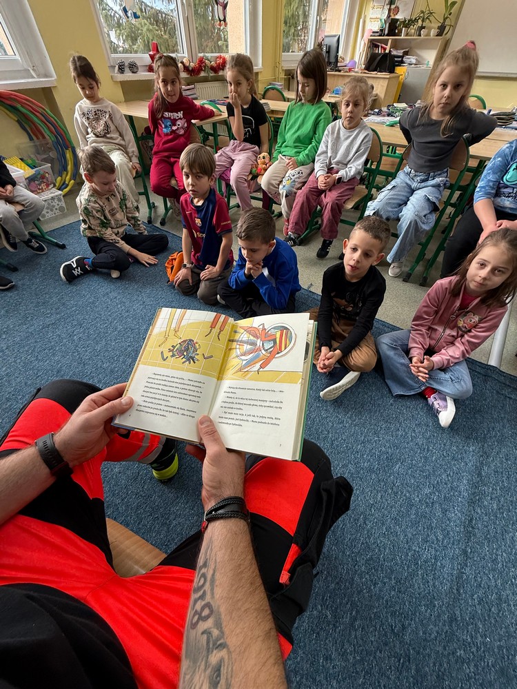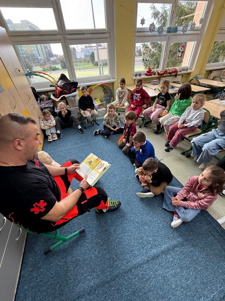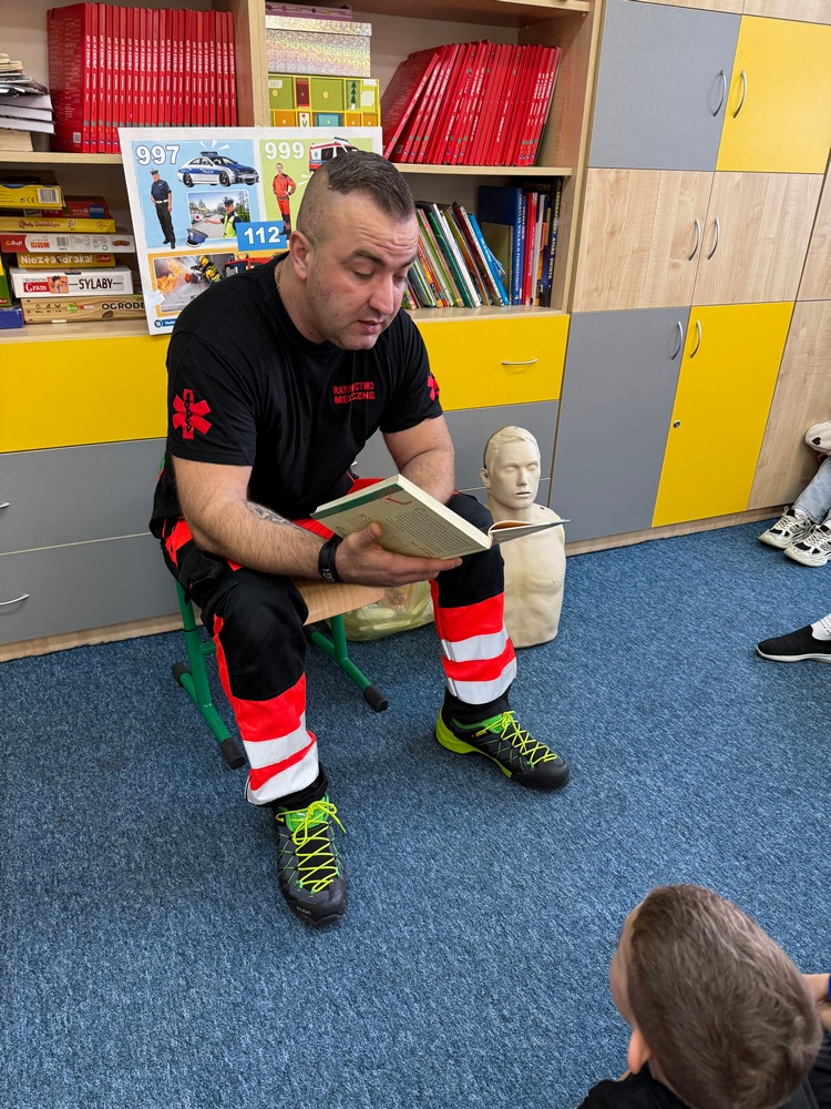 Spotkanie było również częścią projektu czytelniczego „Kto nam dziś poczyta?” – projekt czytelniczy dla klas I, realizowanego w ramach Narodowego Programu Rozwoju Czytelnictwa. Zaproszony gość przeczytał dzieciom fragment książki, łącząc naukę pierwszej pomocy z promocją czytelnictwa.