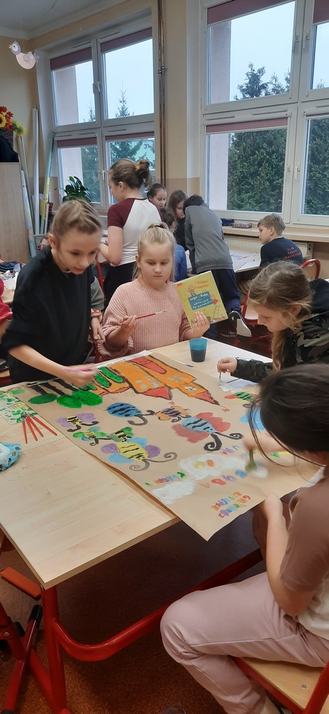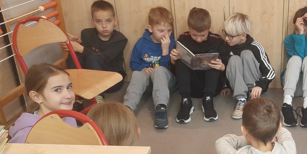W grudniu uczniowie klasy 3b wzięli udział w projekcie czytelniczym „Bibliozwiadowcy”, realizowanym w ramach Narodowego Programu Rozwoju Czytelnictwa, którego celem było rozwijanie zainteresowań czytelniczych oraz poznanie zasobów szkolnej biblioteki. Zajęcia miały formę zabawy połączonej z pracą zespołową i odkrywaniem książkowych tajemnic. Grupy kolejno, odwiedzały bibliotekę i poszukiwały książek na pólkach wykonując określone zadania. Po zakończeniu wszystkich misji w sali lekcyjnej powstała wystawka zebranych książek, z których przez kilka dni czytano fragmenty i rozmawiano o wrażeniach z lektury. Dzieci dzieliły się opiniami, wskazywały tytuły, które najbardziej je zainteresowały i które chciałyby przeczytać w całości. Na zakończenie projektu każda grupa przygotowała plakat reklamujący wybraną książkę. Prace zostały zaprezentowane na szkolnym korytarzu, zachęcając innych uczniów do sięgania po książki. Projekt „Bibliozwiadowcy” okazał się ciekawą i angażującą formą promocji czytelnictwa wśród najmłodszych.
