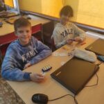 Podczas lekcji informatyki uczniowie klasy 4 i 5 tworzyli konstrukcje z klocków SkriKit – zakupionych w ramach programu „Laboratoria Przyszłości”.