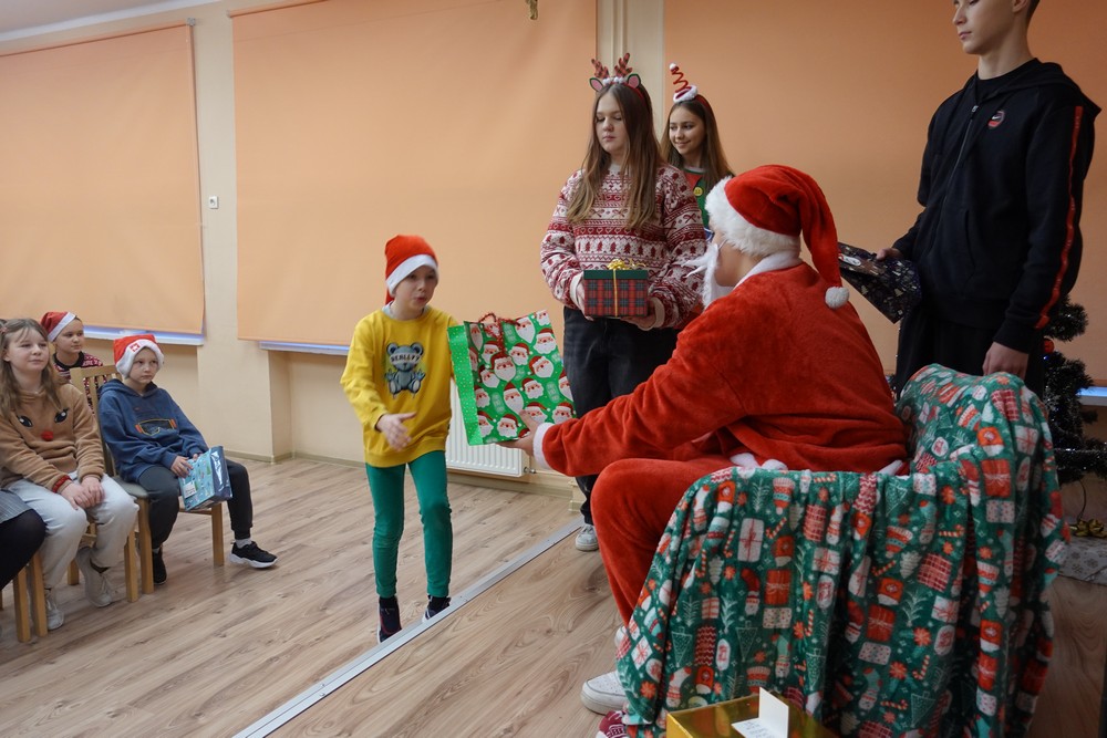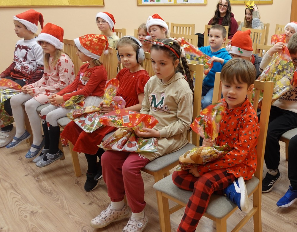 Po dopełnieniu tej procedury dzieci z wielkimi uśmiechami na twarzach odbierały swoje upominki.