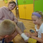 W naszej szkole dnia 17 września b.r. zorganizowano Szkolny Konkurs Wiedzy dedykowany dla klas drugich ze świetlic szkolnych pt. „Bezpieczny świetliczak”. W konkursie rywalizowały ze sobą cztery klasy w drużynach trzyosobowych. Uczniowie zmierzyli się ze sobą w pięciu konkurencjach dotyczących: regulaminu świetlicy, bezpiecznej drogi do szkoły i ze szkoły oraz pierwszej pomocy. W składzie jury zasiadł pan Dawid Michałek oraz pani Klaudia Żurawska.