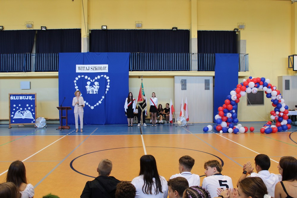 Pan Dyrektor w swoim przemówieniu życzył wszystkim uczniom, nauczycielom i rodzicom owocnego roku, pełnego sukcesów i wzajemnego szacunku. Odśpiewaliśmy również wspólnie hymn narodowy oraz pieśń szkoły, przypominając sobie wartości i tradycje, które są dla nas ważne.