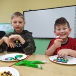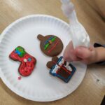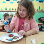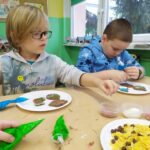 17 grudnia 2024 r. klasy 2d, 3b i 1c uczestniczyły w warsztatach piernikowych. Celem zajęć była doskonała okazja do rozwijania kreatywności wśród uczniów. Mogli oni tworzyć klasyczne, świąteczne wzory, jak i eksperymentować z bardziej nietypowymi dekoracjami pod okiem wykwalifikowanego cukiernika. Inne cele jakie zaoferowały zajęcia, to kultywowanie tradycji świątecznej, utrwalanie przyzwyczajeń do zachowania czystości i porządku w miejscu pracy, dobra zabawa, integracja zespołu klasowego. Ważną rolę odgrywało pobudzenie zmysłów: dotyku, węchu i smaku, gdyż dzieci mogły dotknąć, powąchać i posmakować każdego ze składników potrzebnego do ozdabiania przygotowanych pierników i domków piernikowych.