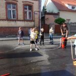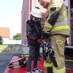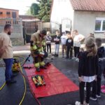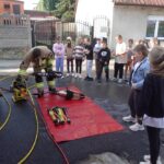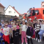 Aby zrealizować te cele, 19 września, uczniowie klasy IIIB i IID wraz z wychowawczyniami udali się na wycieczkę dydaktyczną do Ochotniczej Straży Pożarnej w Przemkowie. Celem wycieczki było również poznanie pracy strażaków, kształtowanie świadomości znaczenia i charakteru pracy strażaków, zapoznanie się z wyposażeniem wozów oraz kształtowanie właściwych zasad zachowania w miejscach publicznych. Już samo wejście do budynku OSP wzbudziło u dzieci zafascynowanie oraz wielki podziw. Dzięki życzliwości strażaków, dzieci mogły z bliska przyjrzeć się ich ciężkiej pracy, miały one możliwość zobaczyć i dotknąć niemal każdej rzeczy. Panowie pokazali dzieciom wozy strażackie oraz sprzęt ratowniczy. Dzieciaki wysłuchały opowieści o trudnej, odpowiedzialnej i niebezpiecznej pracy strażaka oraz o akcjach ratowniczo – gaśniczych. Wielką atrakcją dla dzieci była możliwość przymierzania elementów stroju strażaków. Po tak ciekawej wycieczce, wszystkie dzieci zgodnie przyznały, że zawód strażaka mimo swojej trudności bardzo im się podoba, a niejedno z nich w przyszłość chciałoby pracować w tym zawodzie.