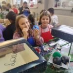 Uczniowie kl. 3 c i d mogli obserwować długi proces produkcji ozdób choinkowych i zobaczyli jak powstają bombki. Podziwiając ogrom pracy włożony w tworzenie tych cudeniek w pierwszym etapie dzieci zostały zapoznane z procesem dmuchania bombek, a następnie „srebrzenia”, gdzie bombka uzyskiwała podkład potrzebny do dalszych etapów. Potem udali się do najciekawszej sali – „dekoratorni”. Tam powstają prawdziwe dzieła. Wszystkie bombki malowane są w tradycyjny sposób, zachowując ręczny charakter wytwarzania. Praca ta wymaga niezwykłej precyzji, trudu i poświęcenia. Na pamiątkę pobytu, każde dziecko otrzymało bombki własnoręcznie ozdobione podczas warsztatów.