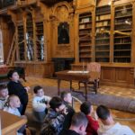 -poznali założenia architektoniczne zamku oraz jego wnętrza, z przepiękną, wykonaną w drewnianej stolarce biblioteką,