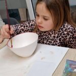 Dopełnieniem wykładu i zwiedzania był wyraz artystyczny. Dzieci własnoręcznie zdobiły farbą porcelanowe miseczki, które oczywiście zabrały do domów.